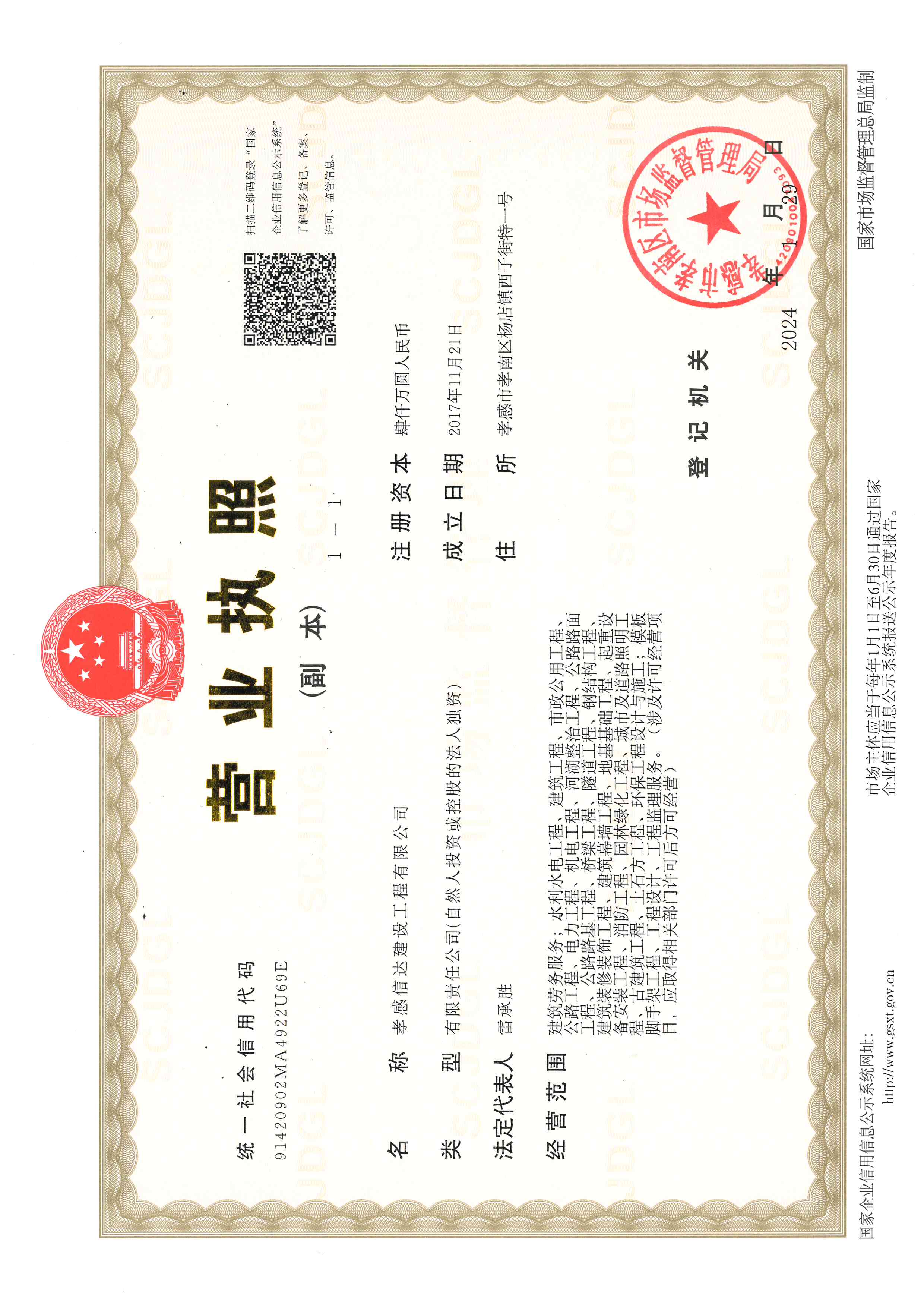 我公司擁有市政公用工程施工總承包貳級、環(huán)保工程專業(yè)承包貳級及水利水電工程施工總承包貳級資質(zhì),經(jīng)營范圍:建筑勞務(wù)服務(wù);水利水電工程、建筑工程、市政公用工程、公路工程、電力工程、機(jī)電工程、河湖整治工程、公路路面工程、公路路基工程、橋梁工程、隧道工程、鋼結(jié)構(gòu)工程、建筑裝修裝飾工程、建筑幕墻工程、地基基礎(chǔ)工程、起重設(shè)備安裝工程、消防工程、園林綠化工程、城市及道路照明工程、古建筑工程、土石方工程、環(huán)保工程設(shè)計與施工;模板腳手架工程、工程設(shè)計、工程監(jiān)理服務(wù)等。